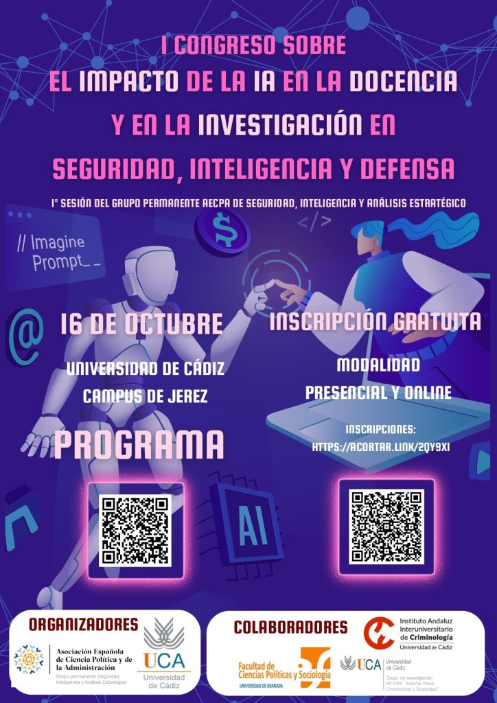 16/10 I Congreso/Reunión del Grupo permanente “El impacto de la IA en la docencia e investigación en seguridad, inteligencia y seguridad“ |